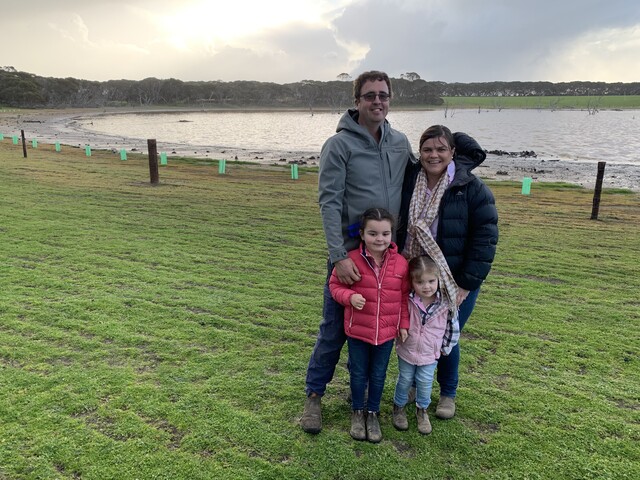 Simon and Marissa Veitch with Ivy and Ava at their MacGillivray property. The Veitch family received funding to complete remnant vegetation protection and revegetation projects. (Supplied)
