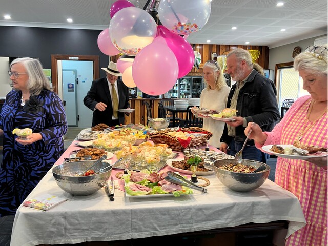 Punters enjoying the fine spread at the Melbourne Cup luncheon at The Shed. (Anne A’Herran)
