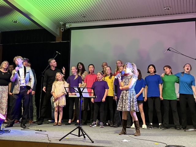 “Search for A Star” performers John Standley and Martina Douglas lead the grand finale at the “Kids 4 Kids” show at the KICE Performing Arts Centre on Saturday evening. (Supplied)