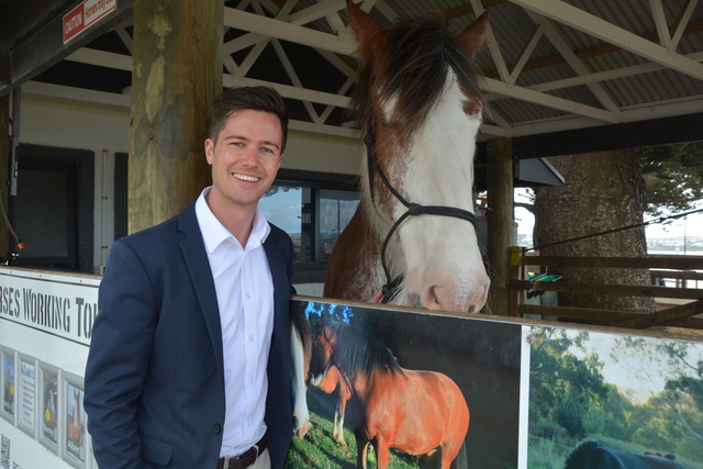 Councillor Brayden Mann with one of the Clydesdales from the horse tram. Could a horse like this be named Mali?