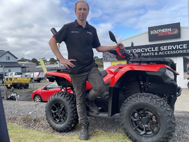 Sam Huchesson owner of Southern Moto and a quad bike with roll bar installed. Photo: Emma Heidenreich 401105_01