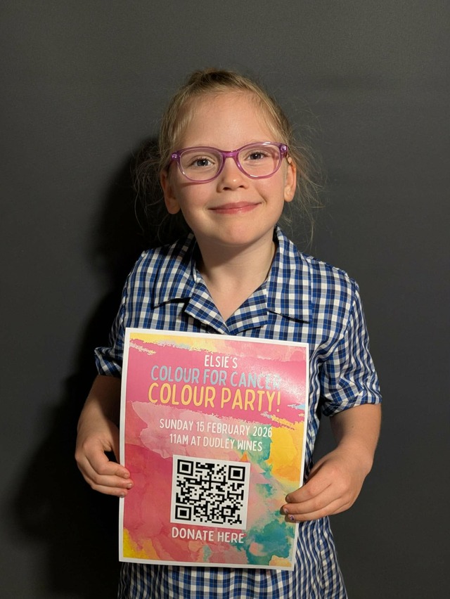 Elsie is all set for her ‘Colour for Cancer’ day at Dudley Winery