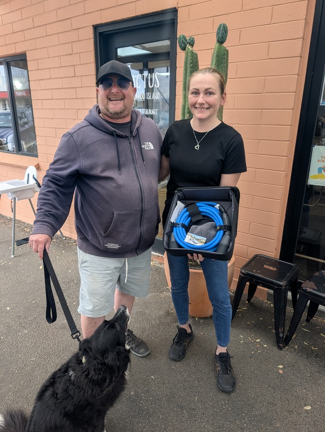 EV charging cable at Cactus Cafe for visiting EV drivers